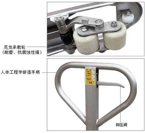 帶稱不銹鋼手動搬運車結(jié)構(gòu)細節(jié)圖: